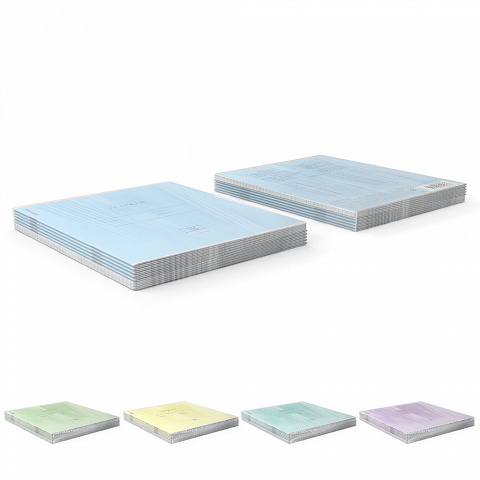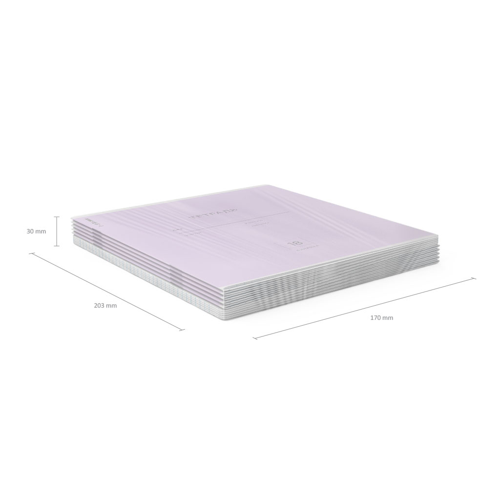 Тетрадь школьная ученическая формата А5+ (170х203 мм). Обложка из высококачественного мелованного картона плотностью 180 г/м2. В блоке 18 листов в клетку с полями. Бумага офсетная плотностью 60 г/м2. Цвет линовки - синий. Скругленные уголки обложки и блока. Тип скрепления - скоба. Тетради одного цвета упакованы в термоусадочную пленку по 10 штук. |