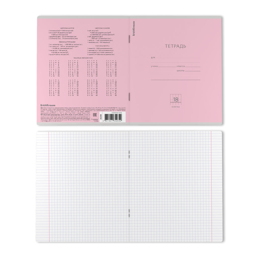 Тетрадь школьная ученическая ErichKrause Классика розовая, 18 листов, клетка (в плёнке по 10 шт.) |