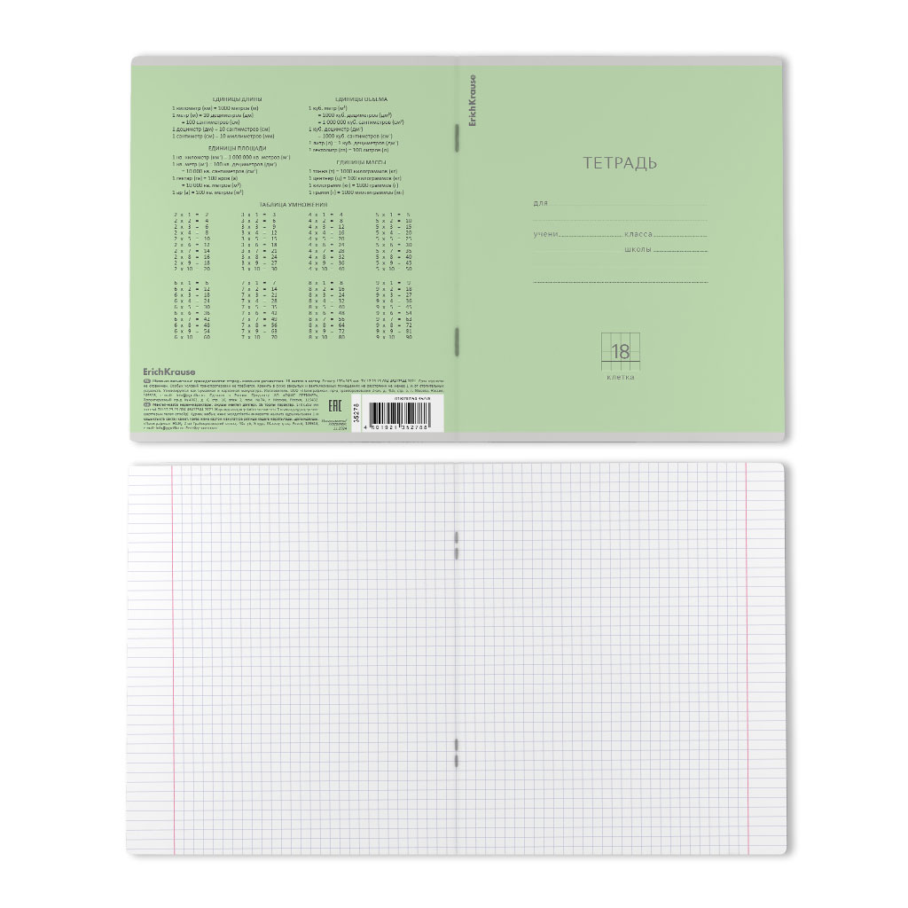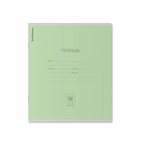 Тетрадь школьная ученическая ErichKrause Классика зеленая, 18 листов, клетка (в плёнке по 10 шт.) |