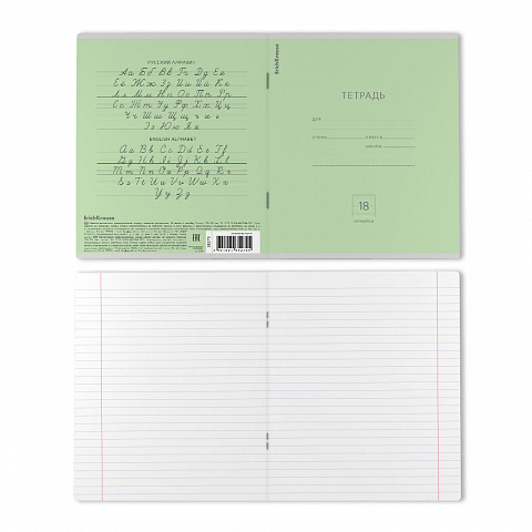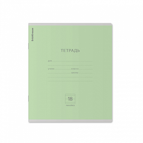 Тетрадь школьная ученическая ErichKrause Классика зеленая, 18 листов, линейка (в плёнке по 10 шт.) |