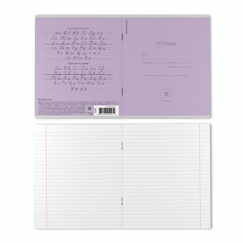 Тетрадь школьная ученическая ErichKrause Классика фиолетовая, 18 листов, линейка (в плёнке по 10 шт.) |