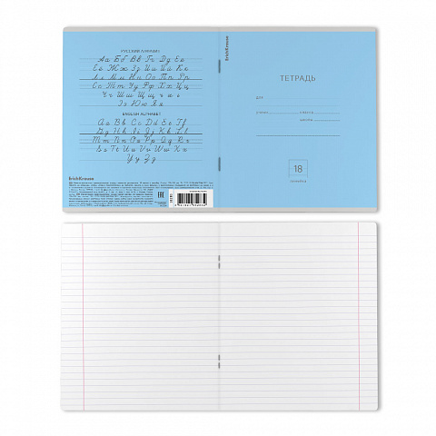 Тетрадь школьная ученическая ErichKrause Классика голубая, 18 листов, линейка (в плёнке по 10 шт.) |