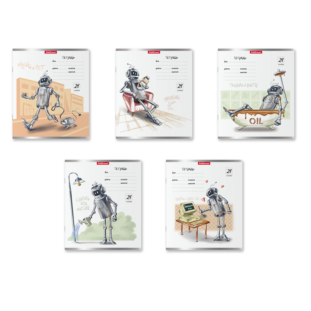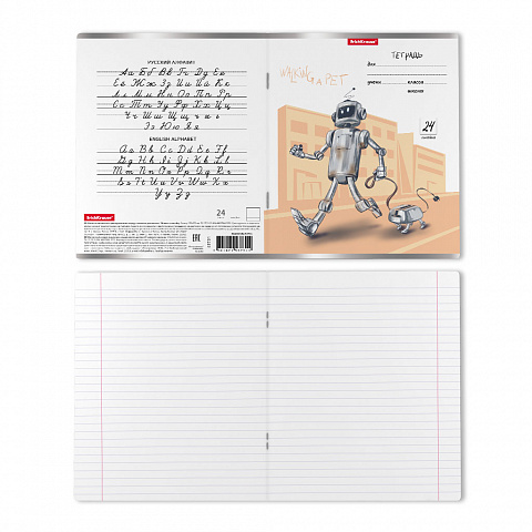 Тетрадь школьная ученическая ErichKrause Robolife, 24 листа, линейка (в плёнке по 10 шт.)_MIX-PACK |