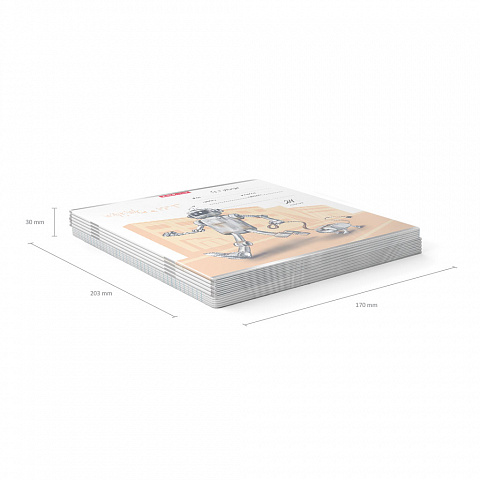 Тетрадь школьная ученическая формата А5+ (170х203 мм). Обложка из высококачественного мелованного картона плотностью 180 г/м2. В блоке 24 листа в линейку с полями. Бумага офсетная плотностью 60 г/м2. Цвет линовки - синий. Скругленные уголки обложки и блока. Тип скрепления - скоба. Тетради упакованы в термоусадочную пленку по 10 штук. |