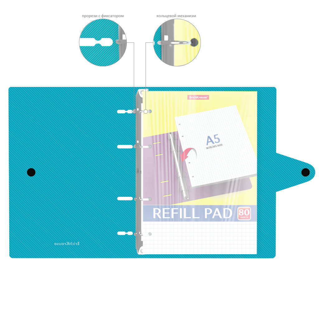 Тетрадь общая с пластиковой обложкой на кольцах ErichKrause Vivid, ассорти, А5, 80 листов, клетка, на кнопке |