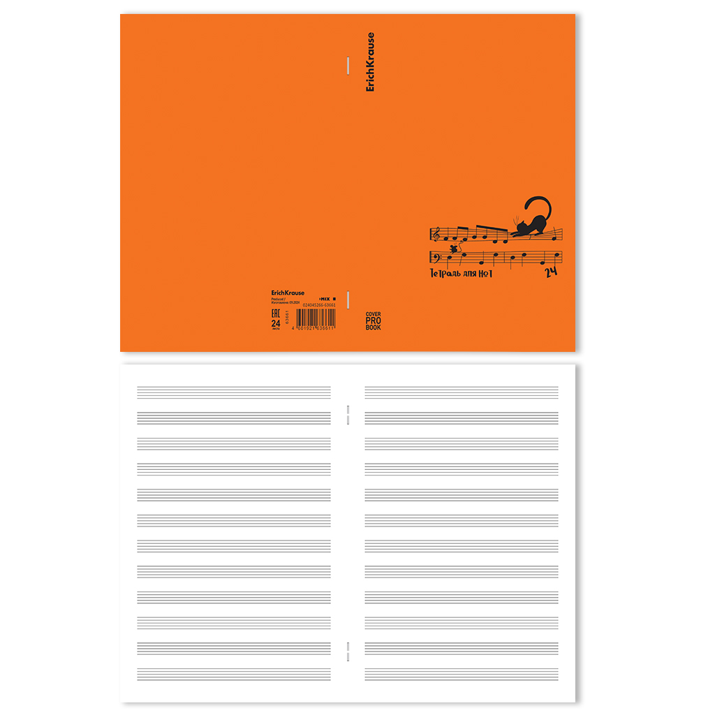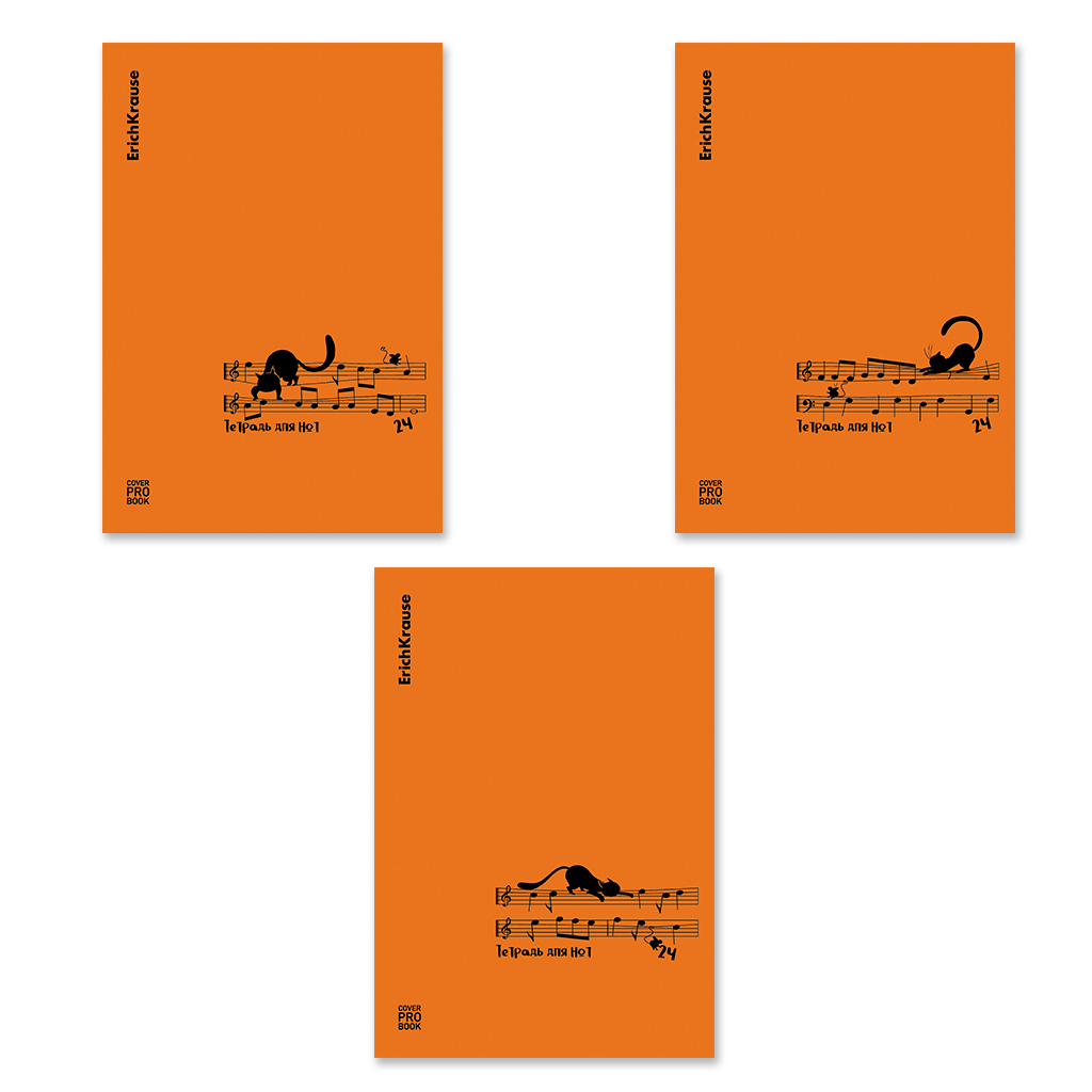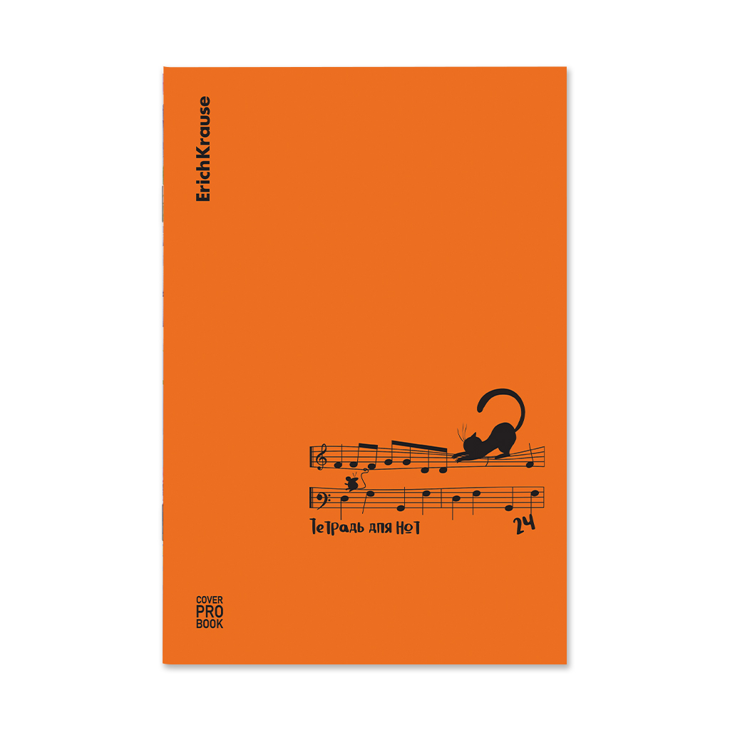 Тетрадь для нот на скобе c пластиковой обложкой ErichKrause CoverProBook Сat Waltz, оранжевый, А4, 24 листа_MIX-PACK |