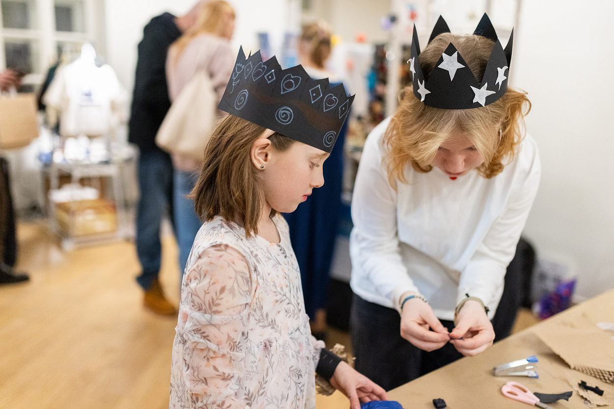 В рамках мастер-классов гости фестиваля создавали головные уборы, аксессуары, короны, воротники, манжеты и бумажные цветы из цветной бумаги ErichKrause Jolly Friends, а также работали над зин-коллажем «Итоги года» и коллажем «Снежники».
