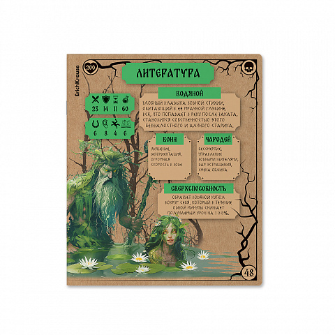 В разных коллекциях представлены разные отделки обложек тетрадей. В одной подборке обложка из плотного крафтового картона, который приятен на ощупь, красиво смотрится и надёжно защищает тетради, а выборочный УФ-лак на обложке другой придаёт эффектный акцент внешнему виду. В тетради есть дополнительный лист с материалами по школьной программе. А если отсканировать QR-код, размещённый на задней стороне обложки, то можно перейти к расширенной версии справочника по разным предметам. Скруглённые уголки обложки и блока обеспечивают безопасность, а скрепление на скобе надёжно удерживает листы.