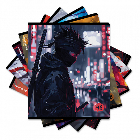 Тетради ученические формата A5+ (170x203 мм) 48 листов в клетку с полями подходят для комфортной учёбы и работы. Плотная обложка из мелованного картона (190 г/м2) защищает тетради и сохраняет их внешний вид. Отделка матовой ламинацией и выборочным УФ-лаком делает обложки особенно привлекательными. Офсетная бумага плотностью 60 г/м2 подходит для письма любыми чернилами. Скруглённые уголки и надёжное скрепление скобами обеспечивают безопасность и аккуратность. Тетради с разными дизайнами упакованы в термоусадочную плёнку по 5 штук.