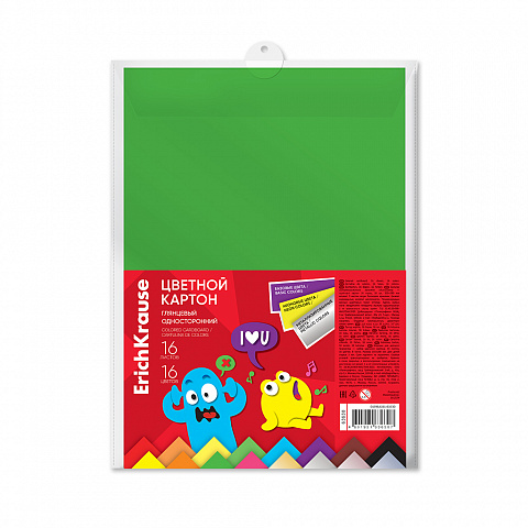 Глянцевый односторонний цветной картон формата A4 (203x280 мм) 16 листов также доступен в наборах из восьми базовых, четырёх металлизированных и четырёх неоновых цветов.