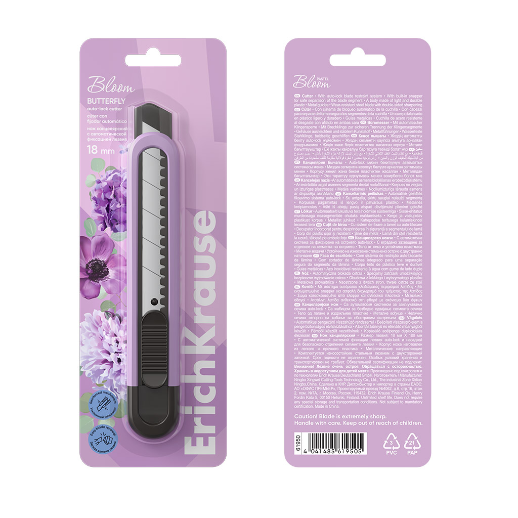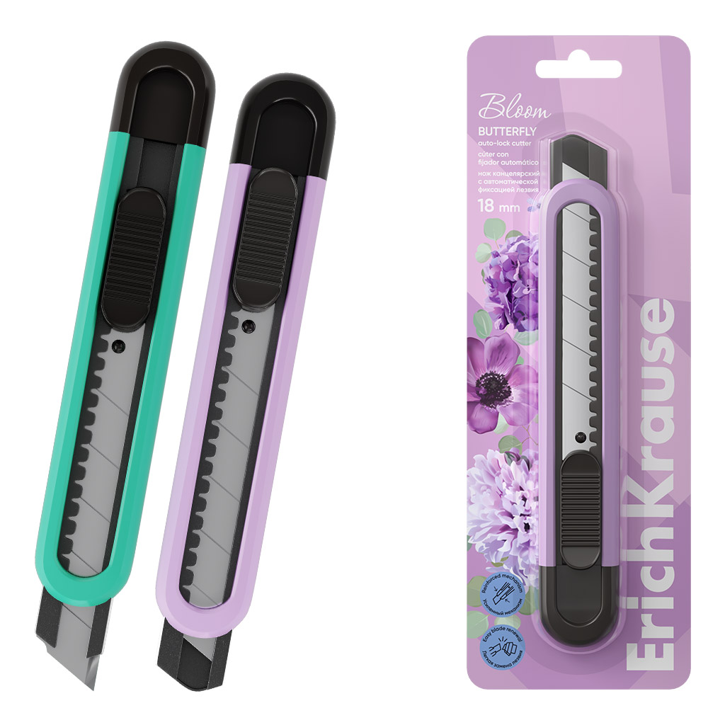 Cutter auto-lock ErichKrause Butterfly Pastel Bloom, 18 mm, assorted colors (blister 1 pc.) |