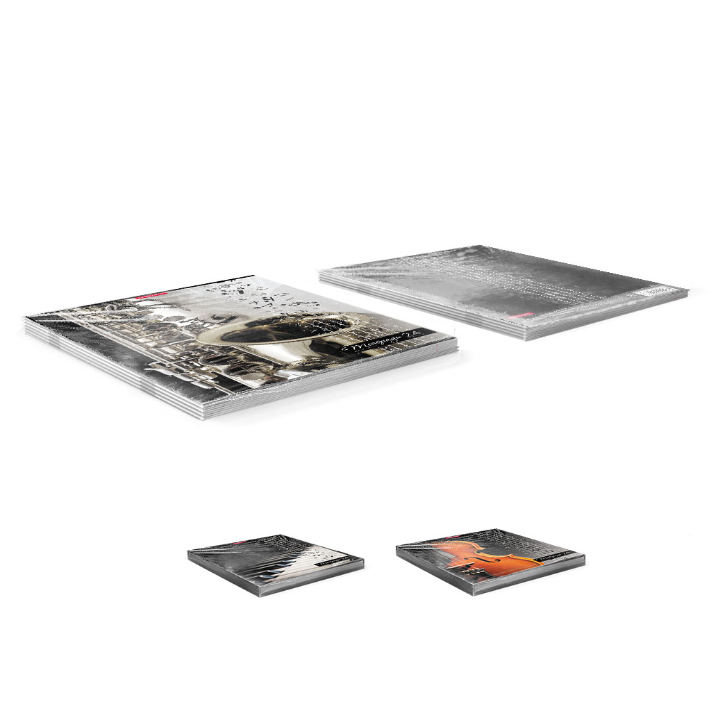 Music notebook with info-pages and auxiliary line stave. The cover is made from high quality coated cardboard. Clear printing of the ruling. Extra white paper. With round corner and pricking with 2 staples to maintain well sheets. One design in shrink wrap. Available in assorted cover designs with no choice. |