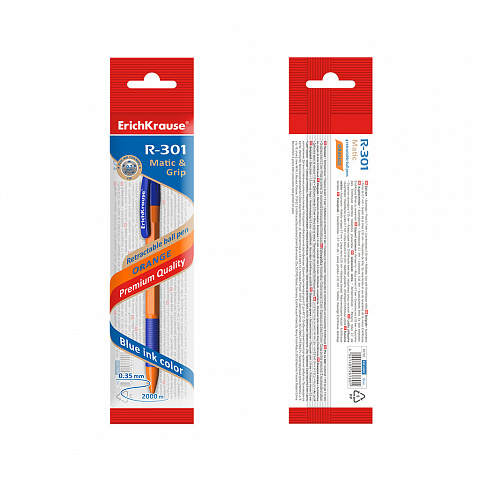 Retractable ballpoint pen ErichKrause R-301 Matic&Grip Orange 0.7, ink color: blue (polybag 1 pc.) |
