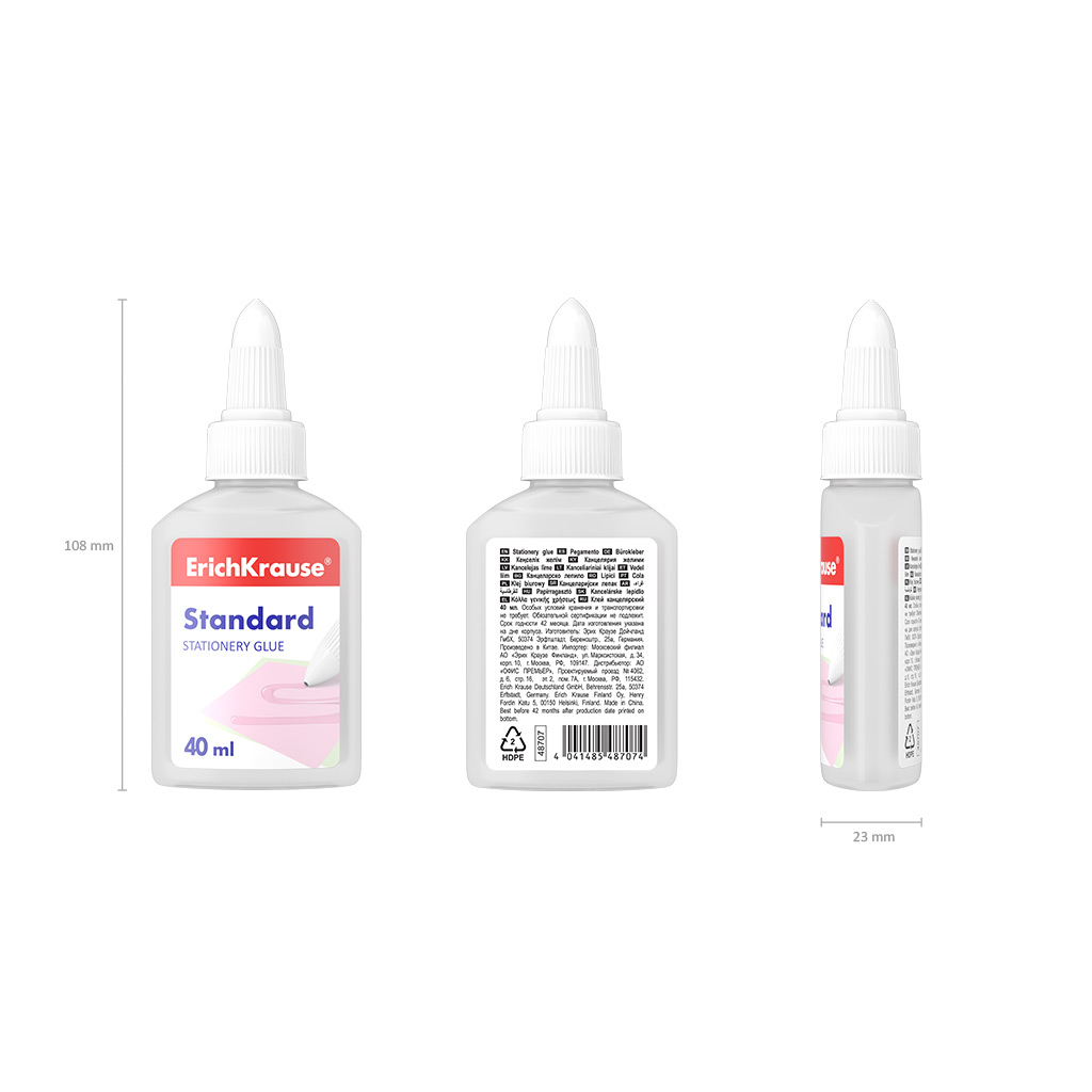 Stationery glue in a bottle with a twisting self-cleaning applicator. Transparent. The glue flow rate is adjustable by twisting of the top part of the applicator cap, that guarantees smooth and economical application and prevents accidental leakage. Comes off easily with water. Non-toxic. Solvent free. Frost-resistant. Suitable for paper, cardboard, photos, decorative handicrafts. |
