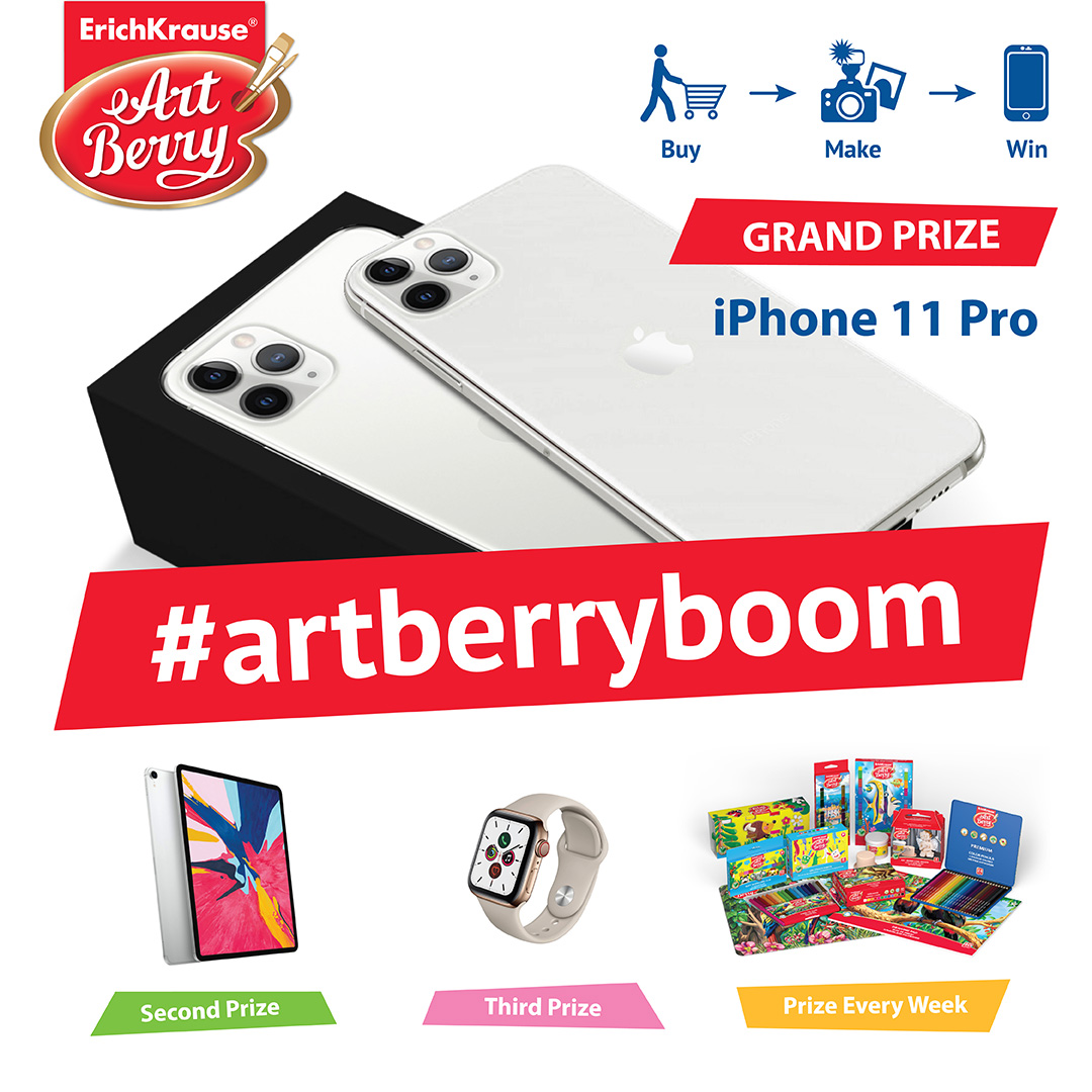 We are announcing the start of #artberryboom contest in which anyone can win one of the many valuable prizes: iPhone 11 Pro smartphone, iPad Pro tablet computer, Apple Watch S5 smart watches and exclusive premium kits with ArtBerry® products. In order to become a participant, from February 1 to May 31, 2020, you need to purchase any ArtBerry® products, make a photo or video with it and upload it to the social network with the hashtag #artberryboom.