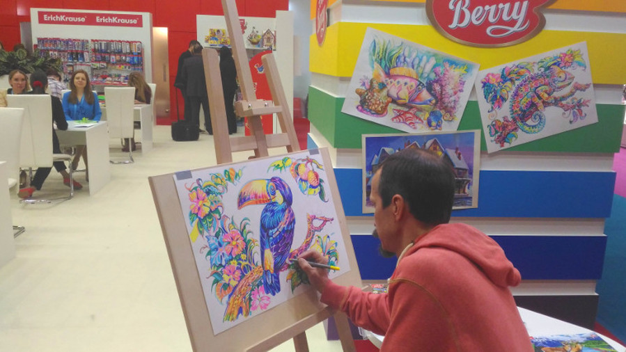 Durante la feria se presentan nuevas pinturas y productos para desarrollo de la creatividad. Los dibujos creados con la ayuda de los productos de Erich Krause son entregados como regalos a los socios y amigos de ErichKrause®.