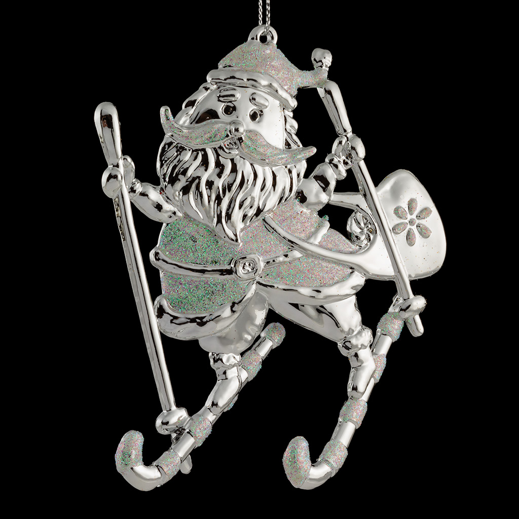 Забавный Санта в серебряном цвете катается на лыжах. Украшение имеет плоскую форму, отличается блестящим глянцевым покрытием и голографическими блестками. Техническая упаковка - полиэтиленовый пакет, только для безопасной транспортировки и хранения. |