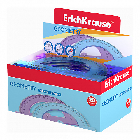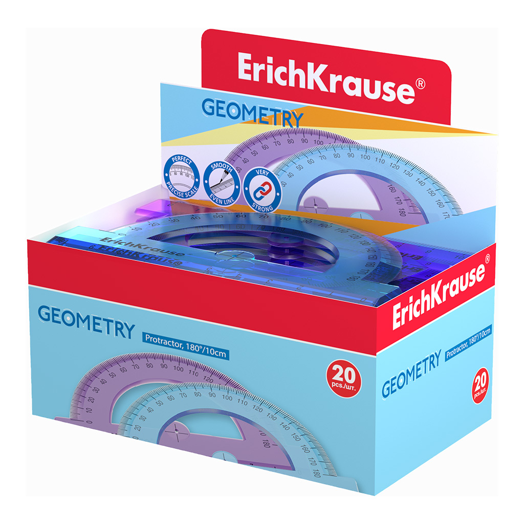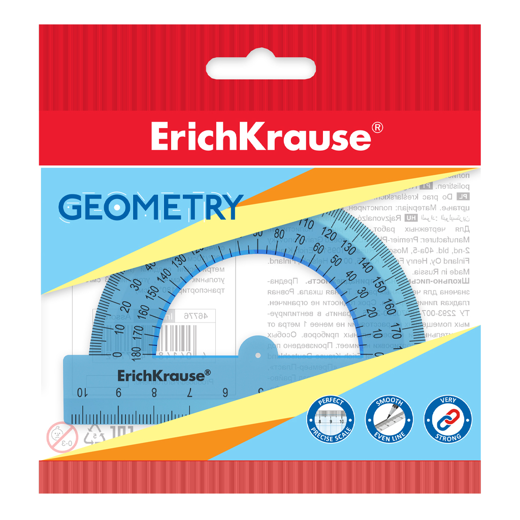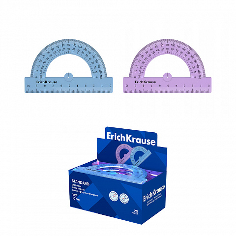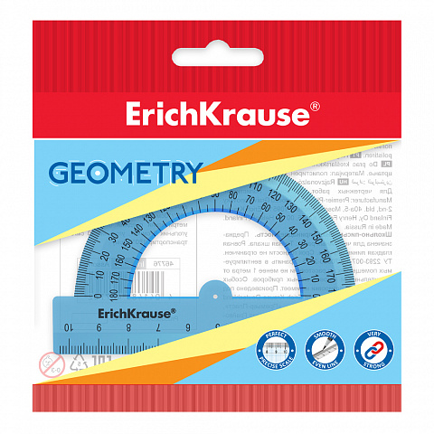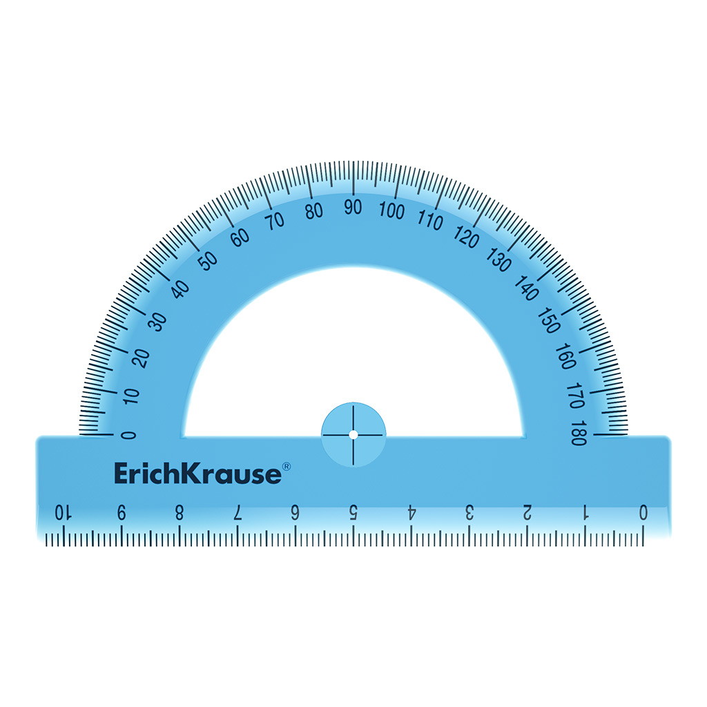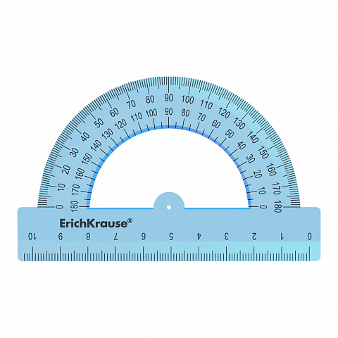 | Полное наименование товара: | Транспортир пластиковый ErichKrause 180°/10см, голубой, в пакете |