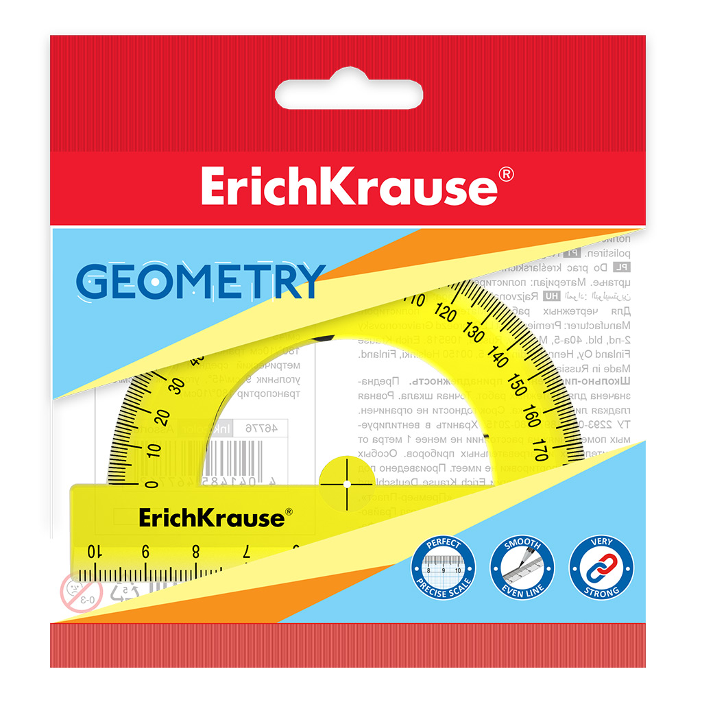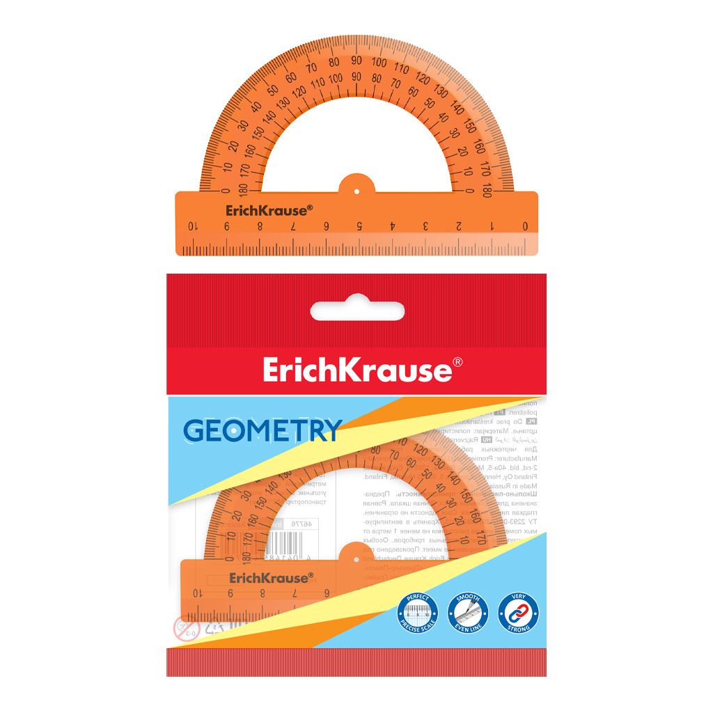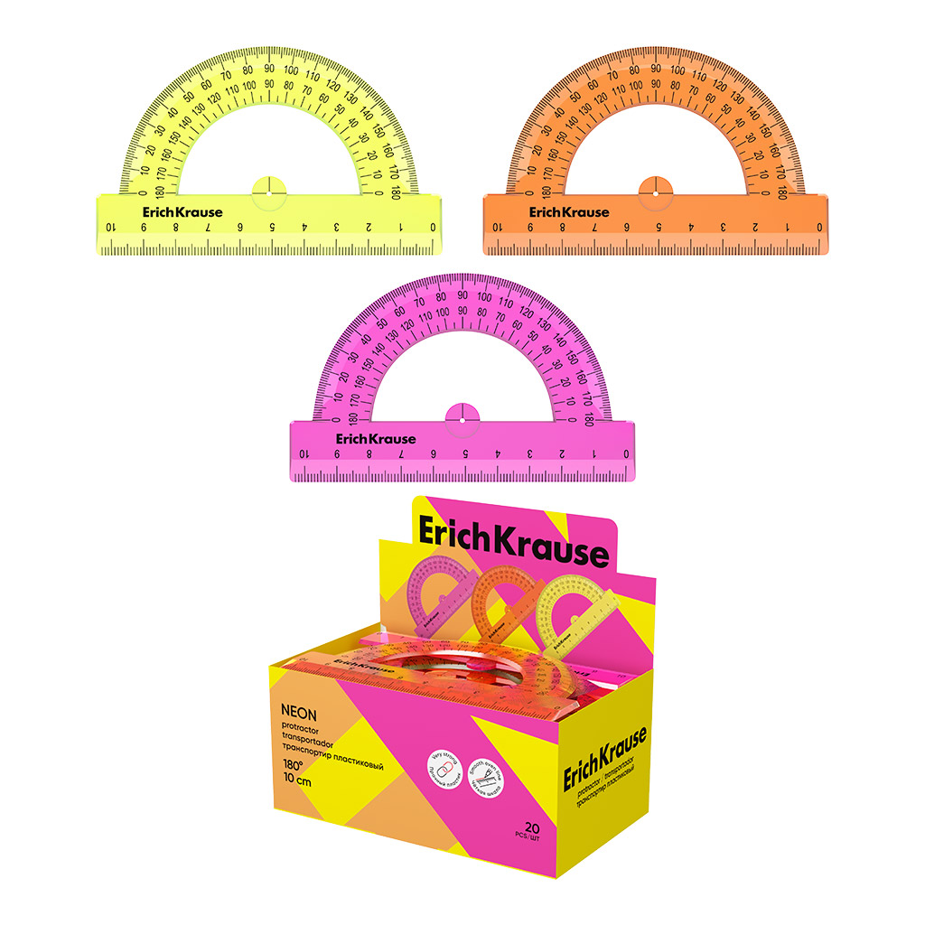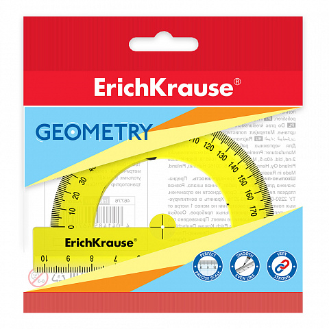 | Полное наименование товара: | Транспортир пластиковый ErichKrause Неон, 180°/10см, желтый, в пакете |