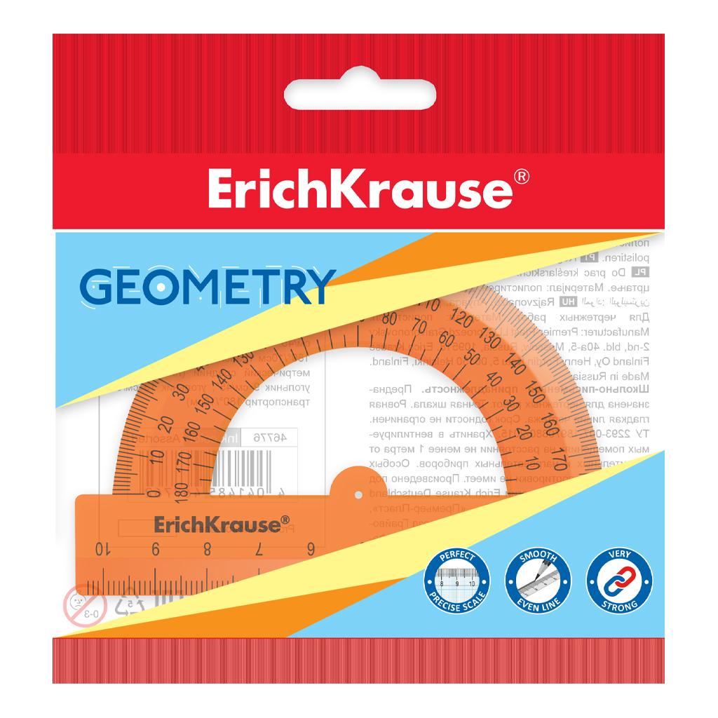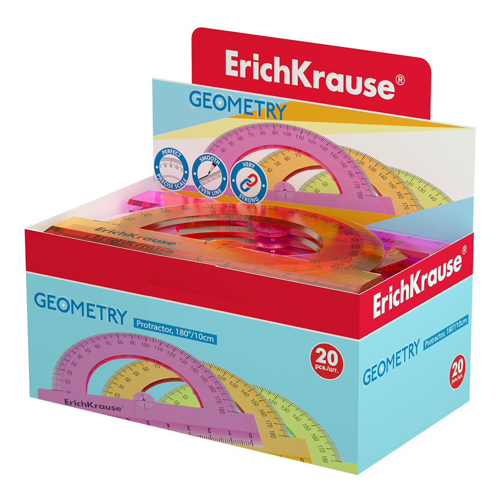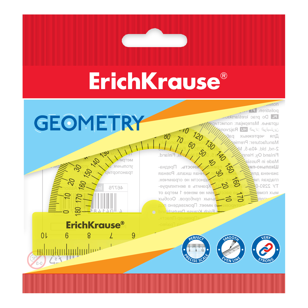 | Полное наименование товара: | Транспортир пластиковый ErichKrause Неон, 180°/10см, желтый, в пакете |