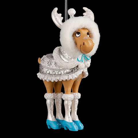 Лосяша одета в элегантную серебряную шубку и туфельки с теплыми гетрами. Капюшон декорирован белым мехом. Сочетание голубого и серебряного цвета наполняет дом радостным предвкушением праздника и волшебства. Украшение отличается тонко прорисованными деталями. Изделие является относительно тяжелым, предпочтительно использование на искусственной елке. Групповая упаковка предназначена только для безопасной транспортировки и хранения. |