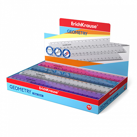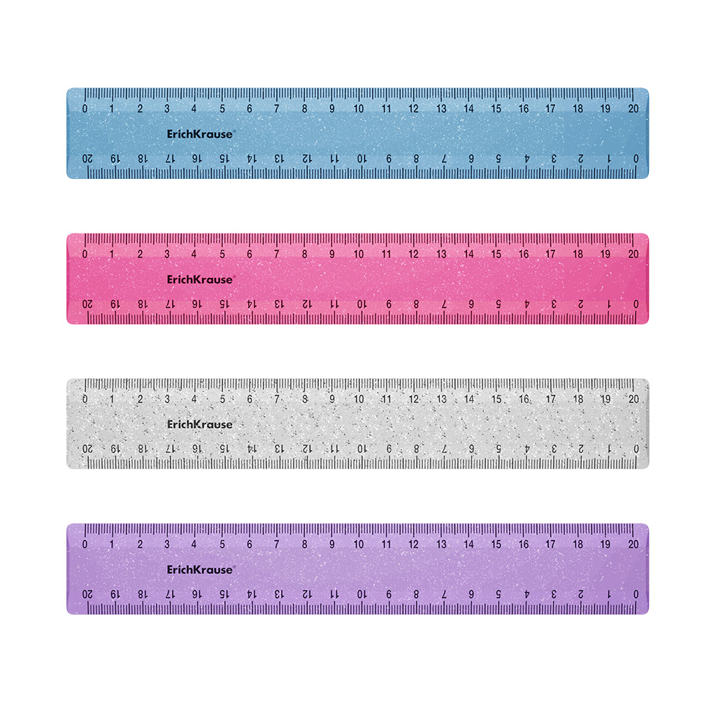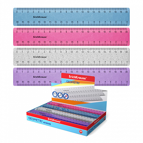 Линейка пластиковая ErichKrause Блёстки, 20см, ассорти (в коробке-дисплее по 44 шт) |