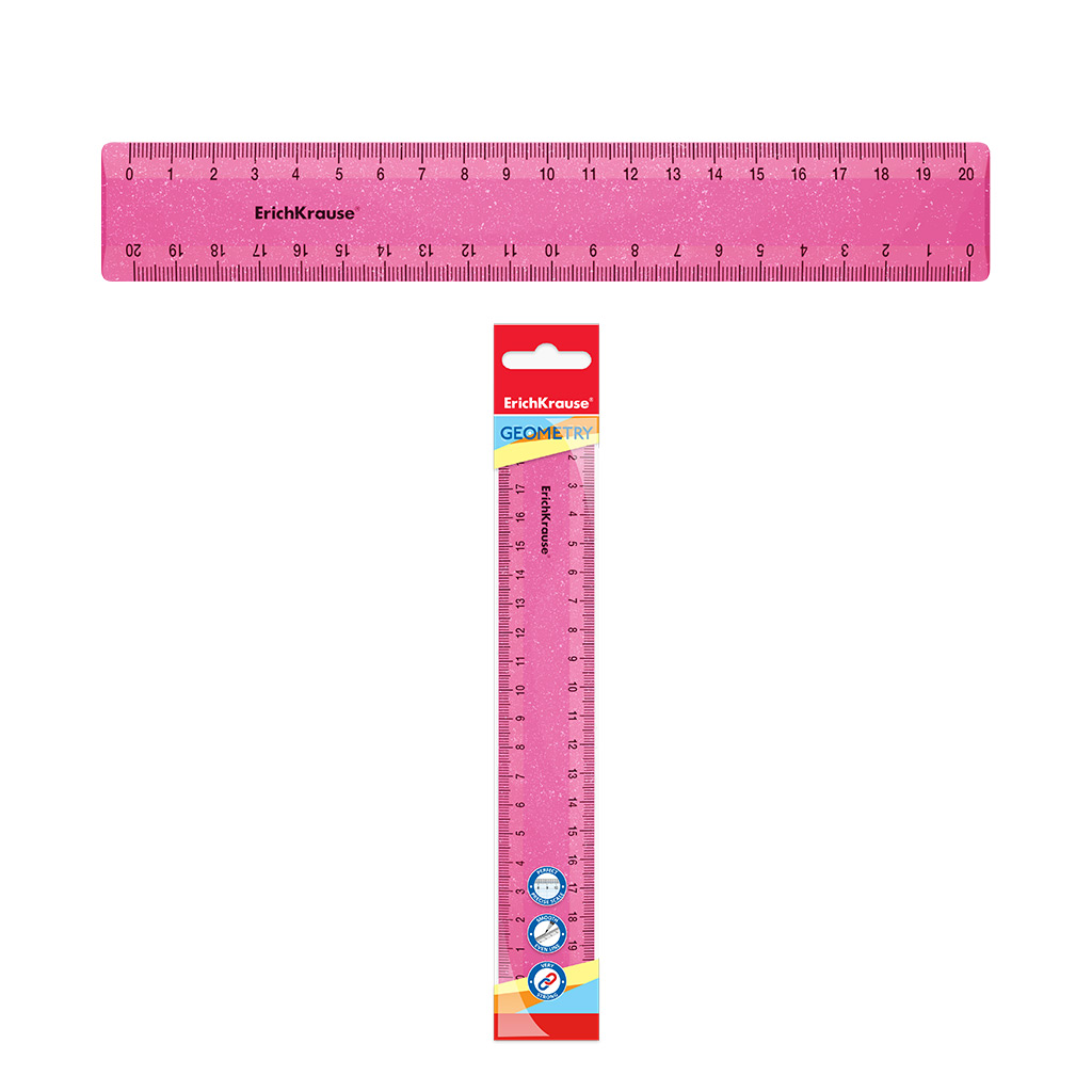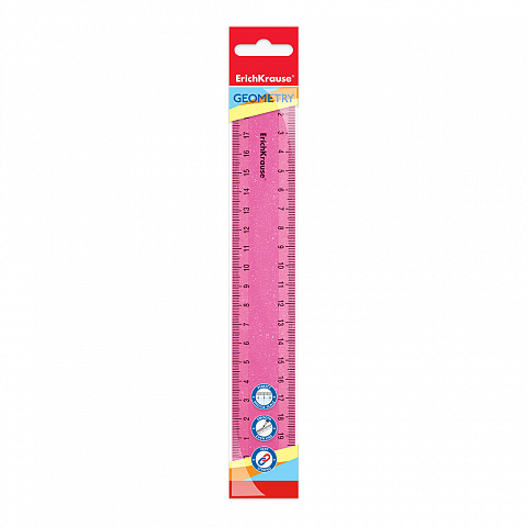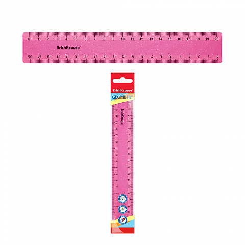 Линейка пластиковая ErichKrause Блёстки, 20см, розовая, в пакете |