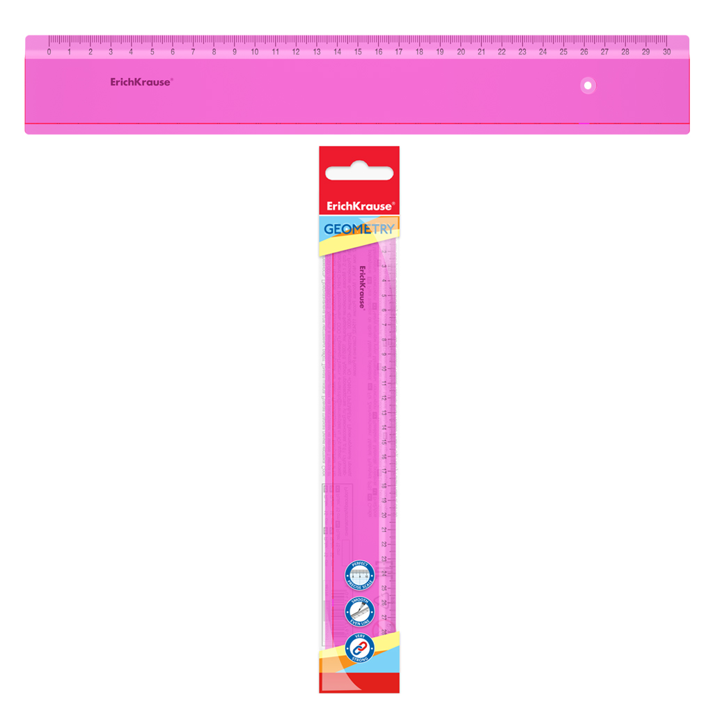 Линейка пластиковая ErichKrause Неон, 30см, розовая, в пакете |