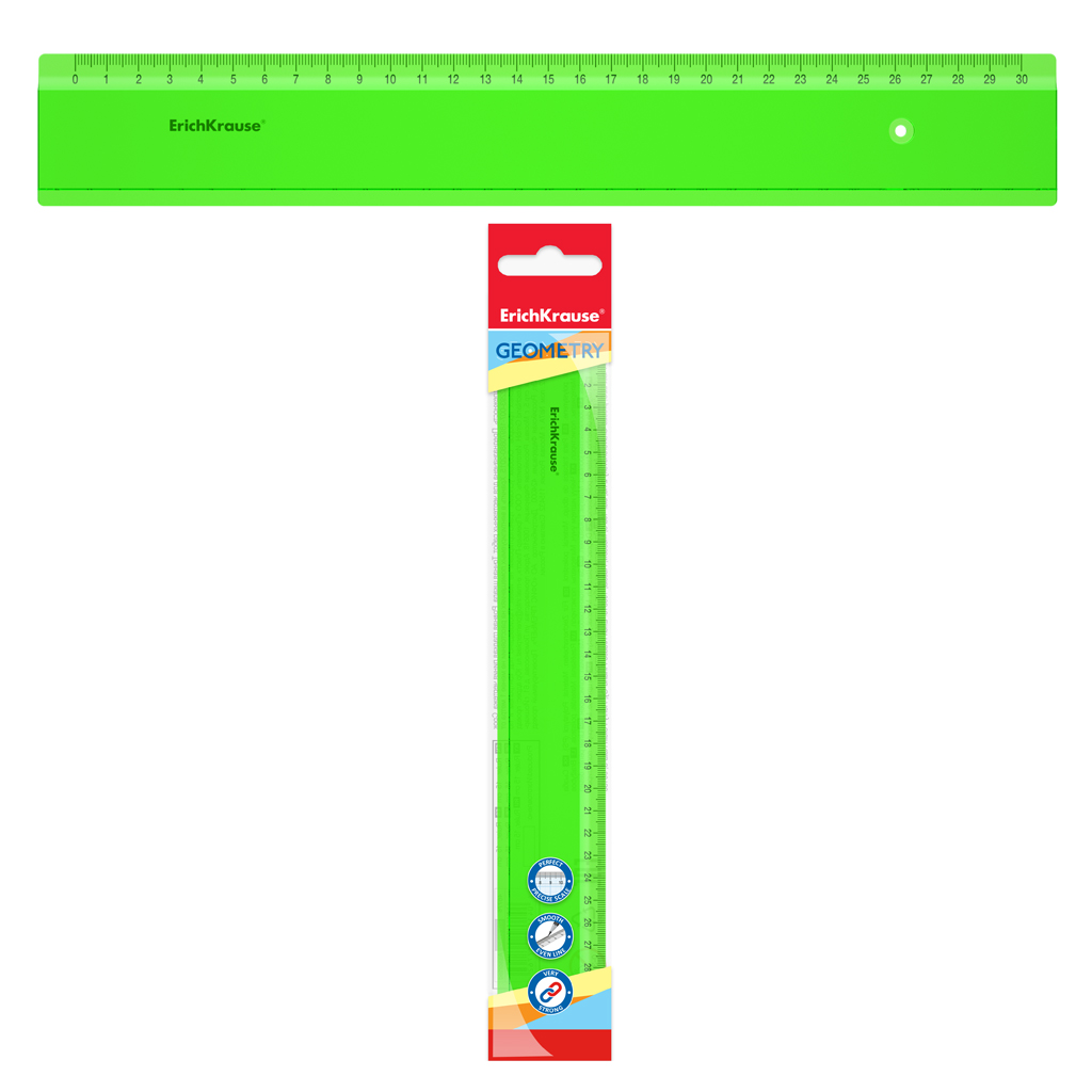 Линейка пластиковая ErichKrause Неон, 30см, зеленая, в пакете |