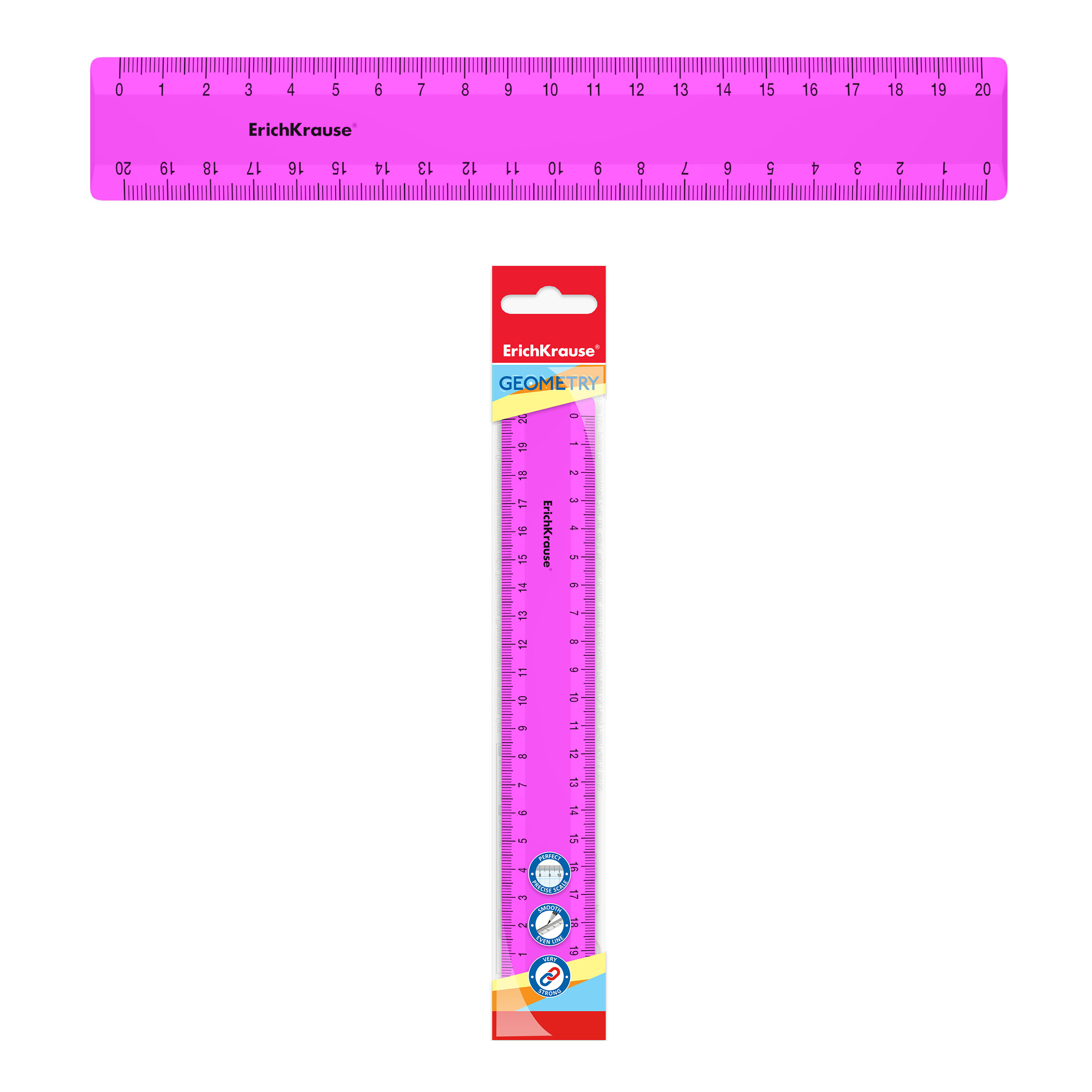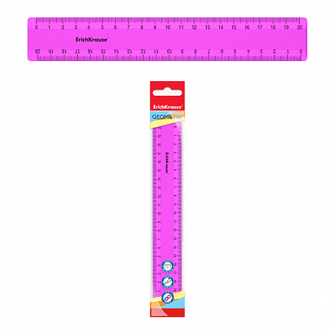 Линейка пластиковая ErichKrause Непрозрачный неон, 20см, розовая, в пакете |