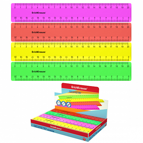 Линейка пластиковая ErichKrause Непрозрачный неон, 20см, ассорти (в коробке-дисплее по 44 шт) |