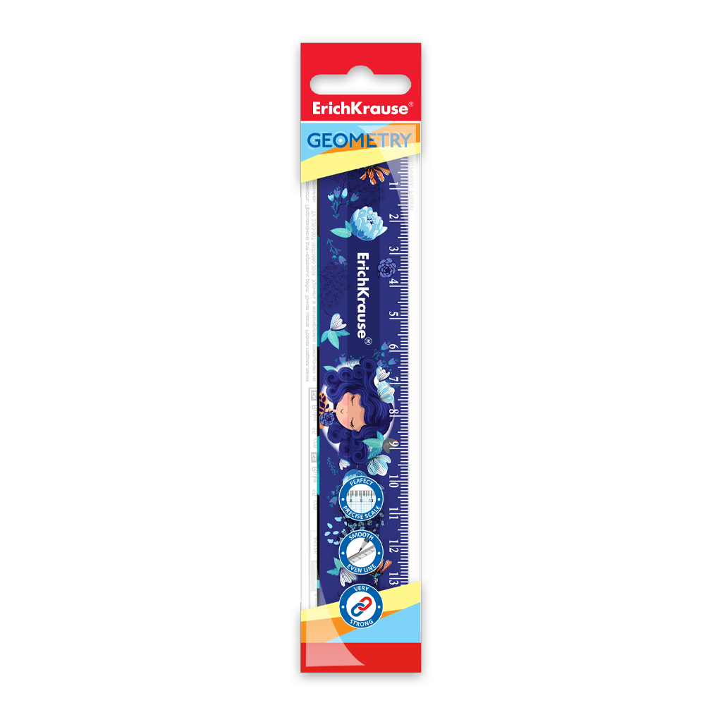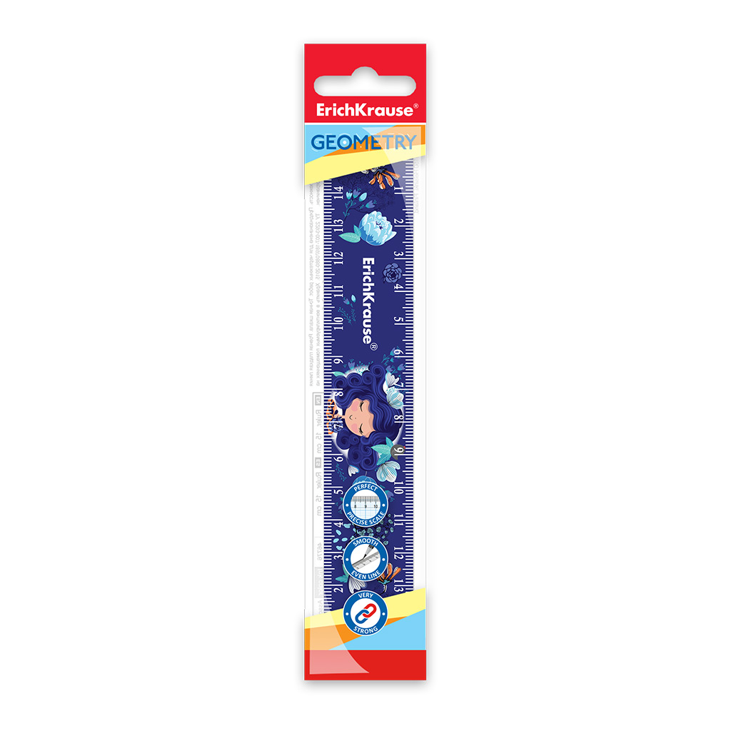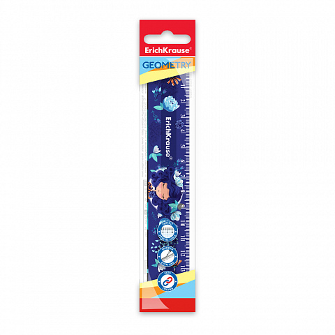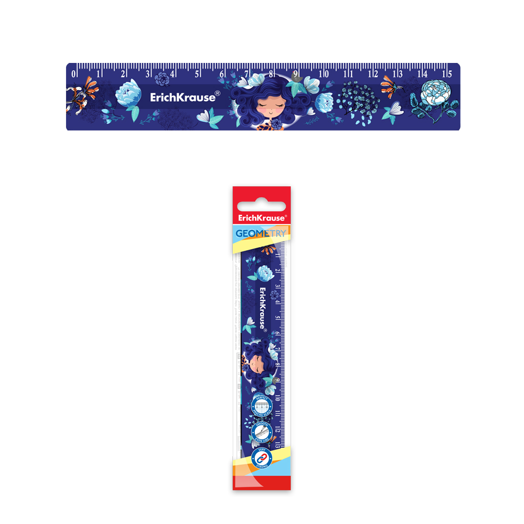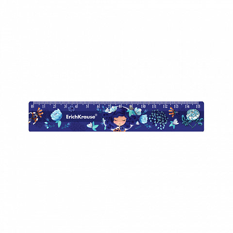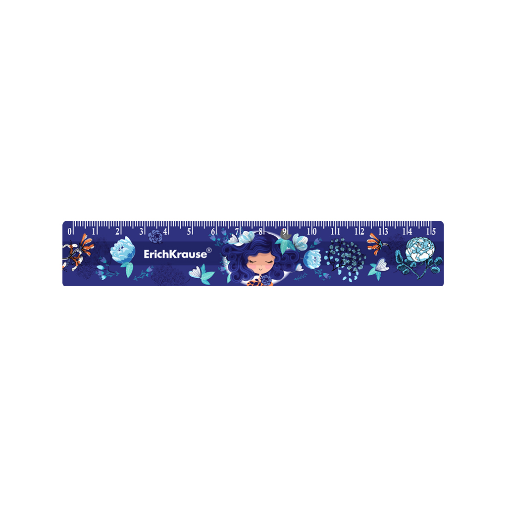 Линейка пластиковая ErichKrause Синие кудри, 15см, в пакете |
