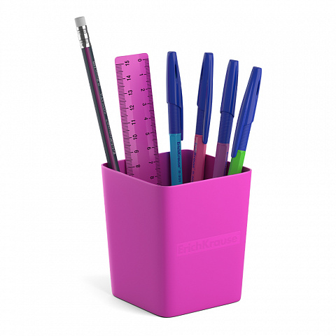 Готовый набор с наполнением. Универсальная подставка изготовлена из высококачественного пластика. В комплекте 6 предметов: 4 ручки, карандаш, линейка. Наполнение может отличаться от представленного. |