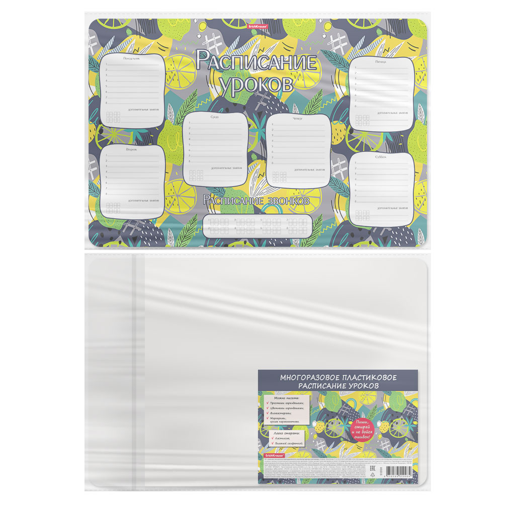 | Полное наименование товара: | Расписание уроков пластиковое ErichKrause Лайм, А3 |