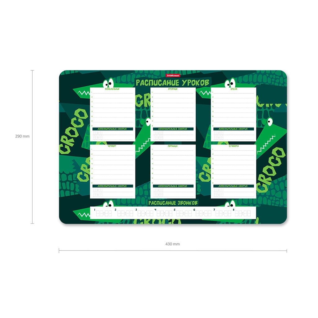 | Полное наименование товара: | Расписание уроков пластиковое ErichKrause Настоящий крокодил, А3 |