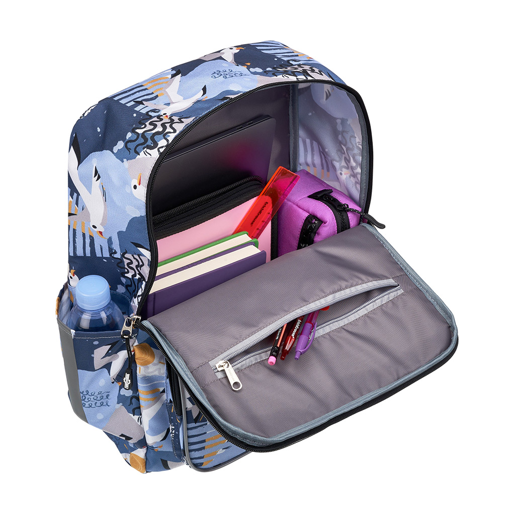 Универсальный рюкзак с клапаном. Объем 18 л, размер 29х43х15 см. Материал: износо- морозостойкий водоотталкивающий 100% полиэстер. Плотные регулируемые по длине лямки. Места крепления лямок усилены дополнительными швами. Внутри основное отделение с карманом для ноутбука и карманом на молнии, дополнительное отделение на молнии с мягким ходом. Снаружи один фронтальный карман и два боковых, карманы оснащены светоотражателями. |