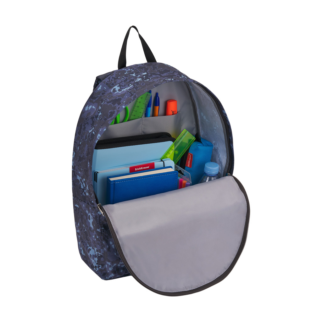 Это модель рюкзака объёмом 17 л и размером 39х29х13 см. Рюкзак выполнен из износо- и морозостойкого водоотталкивающего 100% полиэстера 600D. В основное отделение можно легко поместить школьные принадлежности с учебниками формата А4+ или сменную одежду. Большой передний карман на молнии удобен для того, чтобы положить туда мелкие предметы или аксессуары. Спинка и лямки рюкзака с внутренним уплотнителем подарят комфорт при ежедневном ношении. Места крепления лямок и ручки усилены дополнительными швами. Механизм молний обладает плавным ходом, а на бегунках имеется логотип ErichKrause. Рюкзак EasyLine® 17Л, подходящий для ежедневного использования, будь то школа или тренировка, сохраняет баланс между комфортом и практичностью. Он лёгок и при этом вместителен, что делает его оптимальным выбором. |