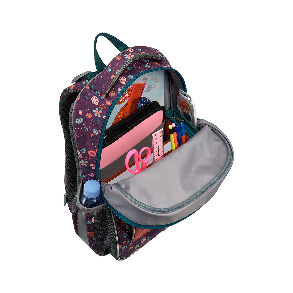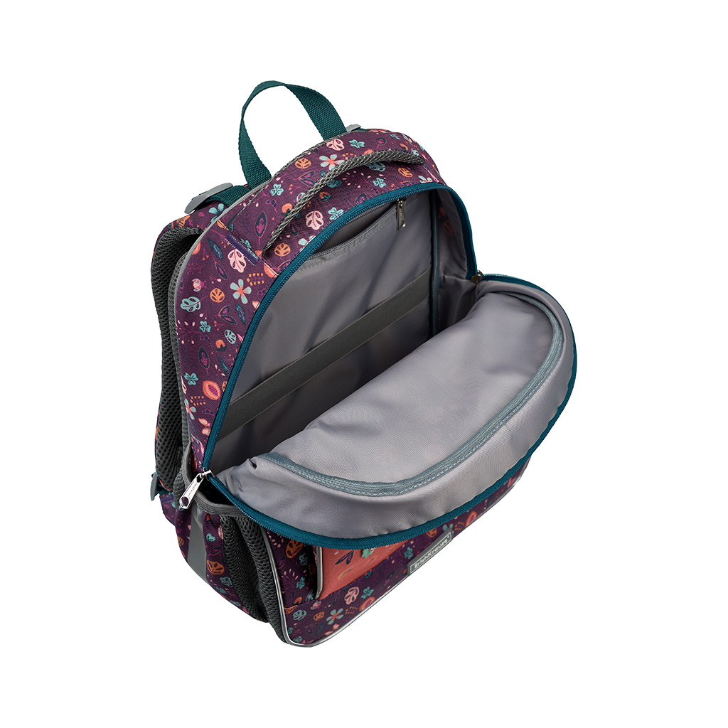 Этот рюкзак размера 39х28х14 см объёмом 15 л изготовлен из полиэстера 600D с полиуретановой пропиткой, что делает его устойчивым к износу и морозу. Внутри вместительное отделение с эластичным фиксатором для тетрадей и учебников формата А4+. Также есть мини-органайзер для мелкой канцелярии и карман на молнии. На дне – жёсткая откидная вставка. Снаружи фронтальный карман на молнии с плавным ходом, а также два боковых на резинке, куда можно положить бутылку с водой или зонтик. Рюкзак весит всего 520 г, что делает его одним из самых лёгких в своей категории. У модели эргономичная спинка с системой ErgoLine®. Такая конструкция из мягких подушечек равномерно распределяет вес рюкзака и снижает нагрузку на позвоночник. Сетчатая ткань спинки “дышит”, а воздушные каналы между ее подушечками препятствуют образованию влаги. Мягкие S-образные лямки не давят на плечи ребёнка. Светоотражающие элементы по всему периметру повышают безопасность в темноте. Модель также оснащена объёмной и удобной ручкой для переноски в руке. Крепления ручки и лямок усилены дополнительными швами из лавсановых нитей. Пластиковые ножки защищают от загрязнений и влаги. Рюкзак ErichKrause ErgoLine® – оптимальный выбор для занятий в школе. |