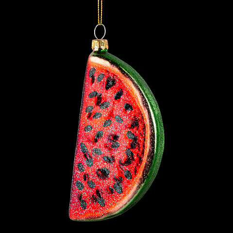 Если праздничной елочке не хватает витаминов, игрушки в виде овощей и фруктов легко это исправят. Крупная долька арбуза выделяется ярким натуралистичным окрасом, каждая семечка аккуратно прорисована. Полупрозрачные белые блестки создают эффект засахаренности. Украшение… |