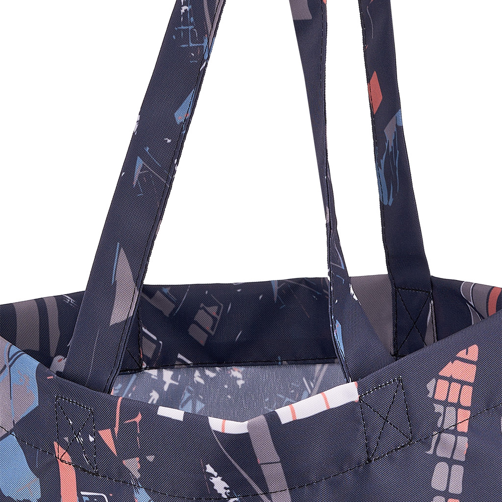 Сумка-шопер, 32x40 см, объемом 10 л имеет одно вместительное отделение. Материал: облегченный износо- морозостойкий водоотталкивающий 100% полиэстер, что позволяет компактно сложить сумку. |