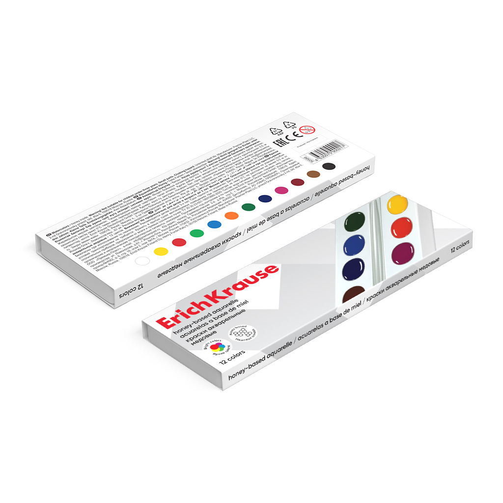 Краски акварельные ErichKrause медовые 12 цветов (в коробке)
