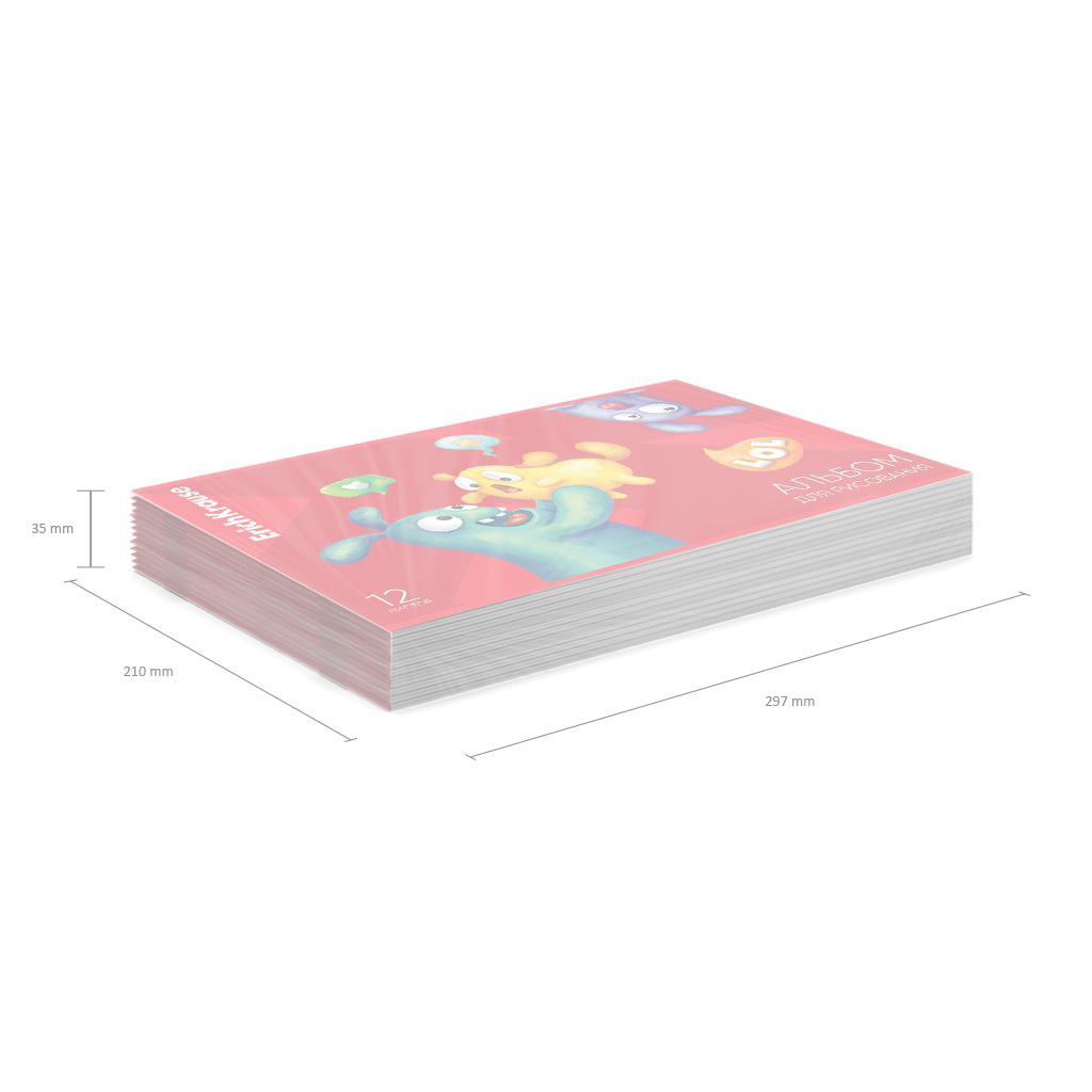 Альбом для рисования формата А4 (203х297 мм). Обложка из высококачественного мелованного картона плотностью 170 г/м2. В блоке 12 листов. Бумага плотностью 100 г/м2. Тип скрепления - скоба. Альбомы разного дизайна упакованы в термоусадочную пленку по 5 штук. |