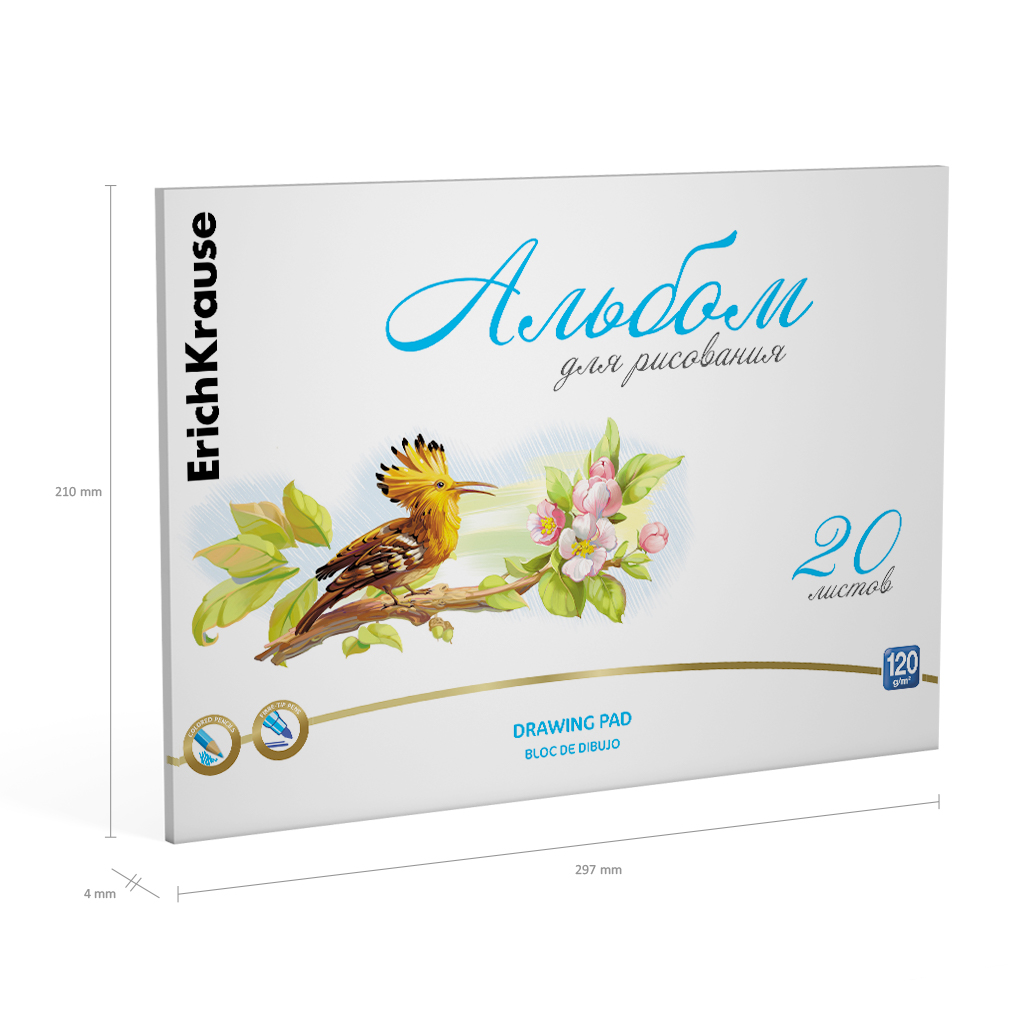 Альбом для рисования на клею ErichKrause Birds, А4, 20 листов |