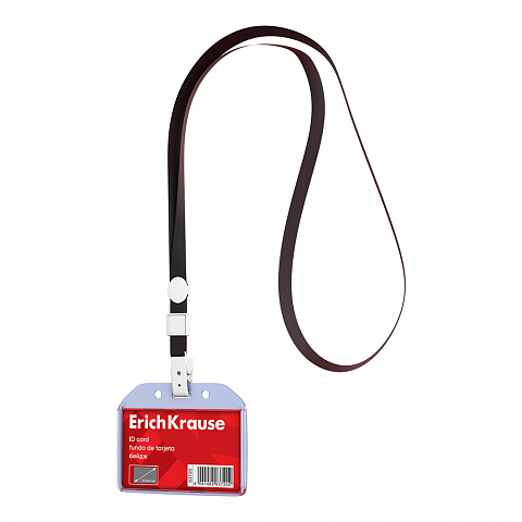 Бейдж горизонтальный в комплекте с лентой ErichKrause размер вставки 85х54 мм, прозрачный, цвет ленты черный (в пакете)