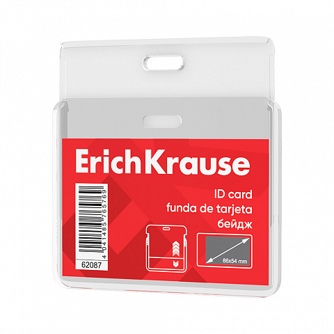 Бейдж горизонтальный в комплекте с лентой ErichKrause слайдер, размер вставки 86х54 мм, ассорти, в пакете |
