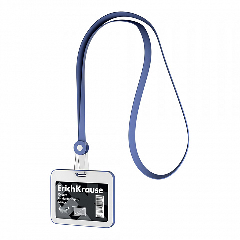Бейдж горизонтальный в комплекте с силиконовой лентой ErichKrause книжка, размер вставки 85х54 мм, синий (в пакете)