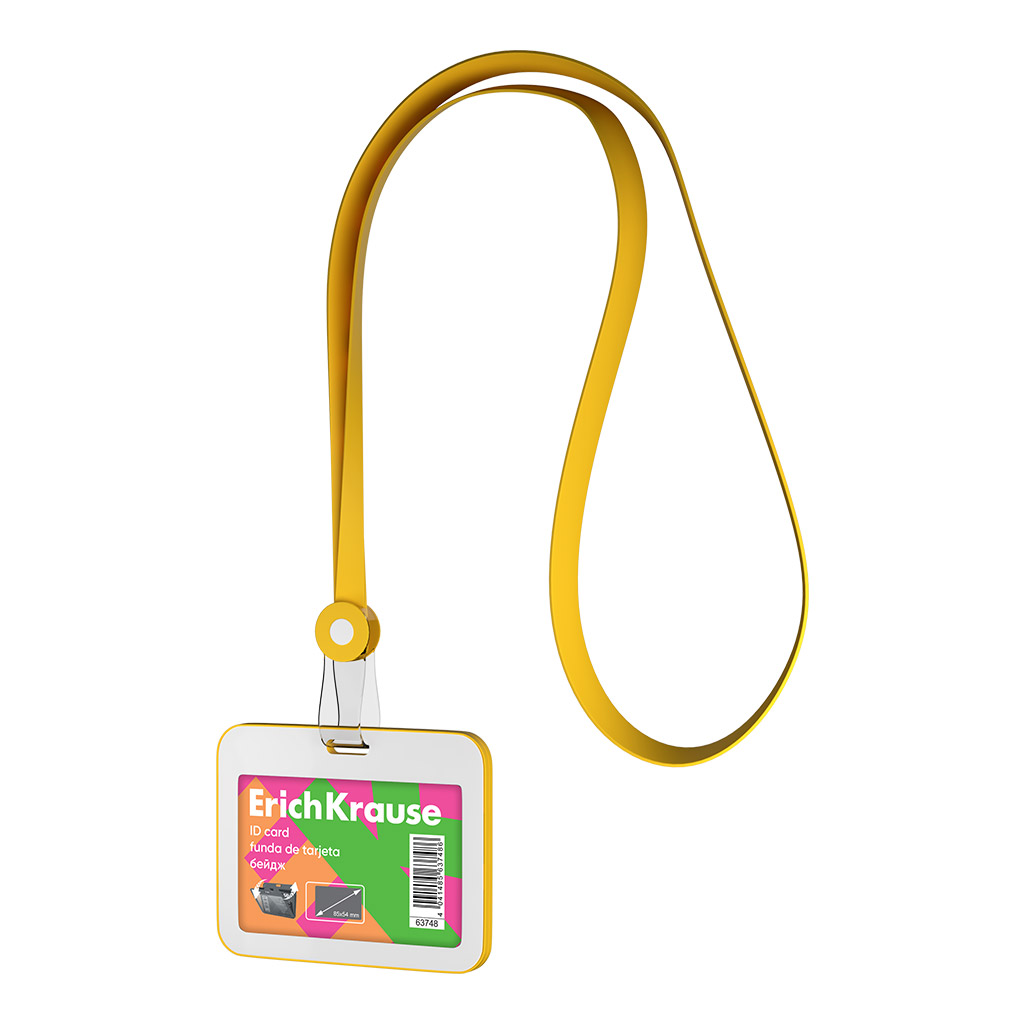 Бейдж горизонтальный в комплекте с силиконовой лентой ErichKrause Neon, книжка, размер вставки 85х54 мм, желтый (в пакете)