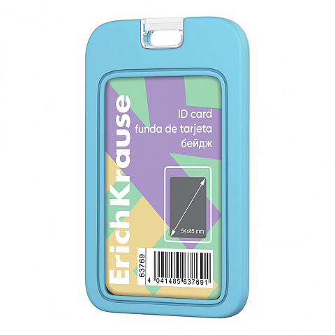 Бейдж вертикальный ErichKrause Pastel, силиконовый, размер вставки 54х85, голубой (в пакете)
