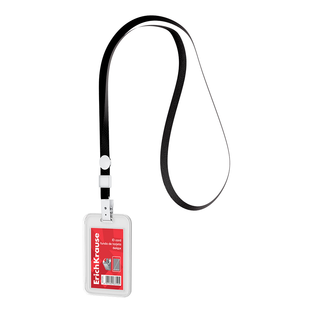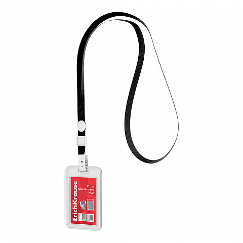 Бейдж вертикальный в комплекте с лентой ErichKrause книжка, размер вставки 54х85 мм, прозрачный, цвет ленты черный (в пакете)
