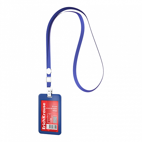 Бейдж вертикальный в комплекте с лентой ErichKrause слайдер, твердый пластик ABC, размер вставки 54х85 мм, синий (в пакете)